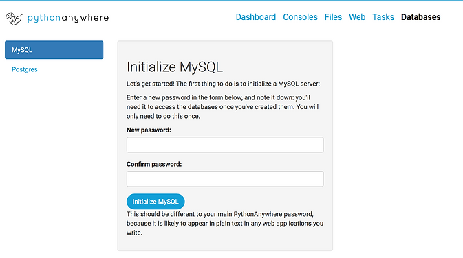 Go to databases page & set password
